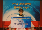 (조세금융신문) MG손해보험(대표이사김상성)이쉐라톤서울디큐브시티호텔그랜드볼룸에서‘2014MG손해보험연도대상시상식’을개최했다고10일밝혔다.이번시상식에서대상은대구지역단대경지점소속최양숙RC가수상했다.최RC는2008년,2013년에이어세번째로대상자리에올라‘3관왕’을차지했다.비전왕은우영임RC(호남지역단전주지점)가,챌린지왕은정계순RC(대구지역단대구지점)가수상하는등총76명의영업가족이수상대열에합류했다.김상성대표이사는축사를통해“지난해매출목표조기달성은모두여러분의노력&
