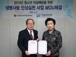 생면보험사회공헌재단 유석쟁전무(왼쪽)와 서서울생명의전화 김인숙원장이 청소년 자살예방을 위한 '생명사랑 인성실천 사업 협약식'을 체결하고 있다.(조세금융신문) 생명보험사회공헌재단(이하생보재단)은 서서울생명의전화와 청소년자살예방을위한'생명사랑 인성실천 사업협약식'을 맺었다고 4일밝혔다.이번 협약을 통해생보재단은 서울소재23개중·고등학교에서 진행되는 인성실천교육을 지원하게 된다.이중고위험군학생200여명에게는미술과연극을활용한심리치료도지원한다.교육은올해상반기부터해당반의전체학생들이모두참여해8회씩정규교육과정의재량시간및창의적체험시간 등으로진행된다.생보재단유석쟁전무는"확산되는청소년자살을막기위해우리&