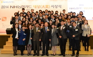 김주하 농협은행장(앞줄 왼쪽에서 다섯번째)과 신응환 NH카드 사장(앞줄 왼쪽에서 네번째)을 비롯한‘NH농협카드대상’수상자들이 기념촬영을 하고 있다.(조세금융신문)NH농협카드는농협중앙회본관대강당에서‘NH농협카드대상(大賞)’시상식을가졌다고13일밝혔다.1996년카드세일즈왕제도로시작한NH농협카드대상에서 올해는개인부문58명,사무소부문19곳,특별상1곳이선정됐다.대상은사무소부문강릉시지부, 농·축협부문서울우유농협,개인부문울주군지부강혜영과장 등이 수상했다.김주하은행장은시상식후수상자를격려하면서“NH농협카드가더욱발전할수있도록수상자여러분들이앞장서이끌어주기를바란다”고