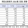 (조세금융신문=이기욱 기자)개인신용평가와 관련된 금융소비자들의 민원이 매년 증가추세를 보이고 있다. 15일 금융감독원이 발표한 자료에 따르면 지난 2016년부터 올해 9월까지 금감원에 접수된 개인신용평가 민원은 총 1056건을 기록했다. 지난 2016년 320건이었던 민원은 지난해 377건으로 증가했으며 올해 1월부터 9월에는 359건으로 나타났다. 이는 지난해 같은 기간(288건) 대비 24.65% 늘어난 수치다. 민원 중 가장 큰 비중을 차지한 요소는 연체·체납정보로 350건(33%)에 달한다. 대출·보증이 225건(21%)으로 2위를 차지했고 개인회생·파산(135건·13%)과 카드·현금서비스(116건·11%)가 그 뒤를 이었다. 금감원은 현재 민원인의 입장을 우선시해 민원인의 어려움을 해소하고 민원의견을 수용하기 위하여 노력하고 있다. 일례로 체납세금에 대한 취소결정이 있었음에도 세무서가 신용정보원에 체납이력정보삭제를 요청하지 않아 신용평가에 부정적으로 작용했던 민원의 경우 제출한 취소결정서를 근거로 체납이력을 즉시 삭제하는 조치를 취한 바 있다. 다만 법규상 불가하거나 신용을 정확하게 평가하기 위해 불가피한 내용에 대해서는 민원요구를 수용하기