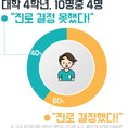 (조세금융신문=이유리나 기자) 올해 대학 4학년인 대학생 10명중 4명은 아직도 진로결정을 못한 것으로 나타났다. 22일 잡코리아와 알바몬이 올해 대학 4학년생 752명에게 ‘향후 어떤 일을 하고 싶은지 진로를 결정했는지’ 물어본 결과 ‘진로를 결정했다’고 답한 대학생은 60.0%로 조사됐다고 밝혔다. 반면 ‘아직 진로를 결정하지 못했다’고 답한 응답자도 40.0%로 적지 않았다. ‘진로를 결정했다’고 답한 대학생들은 ‘진로를 결정할 때 가장 도움이 된 요인’으로 ‘평소 본인의 생각/하고 싶던 일(46.8%)’의 영향이 가장 컸다고 답했다. 그리고 ‘아르바이트 경험’이 도움이 됐다는 대학생도 27.9%로 다음으로 많았다. 이외에는 ‘성격유형검사나 적성검사 결과(18.0%)’가 도움이 됐다는 대학생이 많았고, 이어 전공수업(17.7%)과 취업강의/진로캠프(17.1%)가 도움이 되었다는 응답자가 많았다. 진로를 결정한 대학생이나 결정하지 못한 대학생 모두 미래에는 ‘관심 분야/좋아하는 분야의 일’를 하고 싶다고 답했다. ‘앞으로 미래에는 어떤 일을 하고 싶은가’라는 물음에 ‘관심 분야/좋아하는 분야의 일’을 하고 싶다는 응답자가 전체 대학생 중 71.5%로