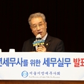 (조세금융신문=이지한 기자) 서울지방세무사회(회장 김완일)는 16일 한국세무사회 6층 강당에서 세무사업계의 미래를 이끌어 갈 청년세무사를 위한 세무실무 발표회를 개최했다. 이번 발표회는 코로나19로 인해 집합 활동에 어려움을 겪고 있을 청년 세무사들에게 세무 실무와 관련된 노하우를 전수하고, 수임업체 계약과 관리에 있어 유용할 스피치와 리더십에 관련된 내용을 함께 공유하는 자리로 마련됐다. 서울지방세무사회 김완일 회장은 다년간의 실무경험을 바탕으로 한 세무보고서 작성요령을 직접 설명하며 실무 처리에 대한 노하우를 전수했다. 특히, 최근 4차 산업혁명 및 인공지능(AI)의 발달로 급변하고 있는 세무서비스 시장의 현실을 언급하면서 세무사가 스스로 변화하는 노력이 필요하다는 것을 강조했다. 김 회장은 세무사는 변호사, 회계사와 달리 회계와 법률서비스를 양측면을 공통으로 겸하고 있어 다른 자격사에 비해 대단히 고급화된 세무서비스를 제공하고 있다고 전했다. 그러면서, 단순 기장이나 조정업무에 국한되지 않고 세무컨설팅을 통해 보다 고급화된 서비스를 제공함으로써 납세자로부터 신뢰받을 수 있는 방안 등에 대해 설명했다. 또한, 컨설팅 실무에 대한 보고서 및 제안서 작성 요