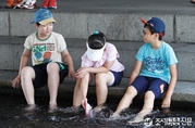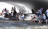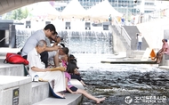 (조세금융신문=전한성 기자) 서울의 낮 최고기온이 35도까지 오르며 폭염주의보가 내려진 11일 오후 서울 청계천에 아이들이물가에 발을 담그며더위를 피하고 있다.