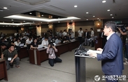 (조세금융신문=전한성 기자) 서울과 제주 신규 시내면세점 사업자 선정 발표가 10일 오후 영종도 인천공항세관에서 열린 가운데 이돈현 특허심사위원장(관세청 차장)이 선정된 업체를 발표하고 있다.이날 관세청 면세점특허심사위원회는 신규 면세점 사업자로 서울 일반경쟁에 HDC신라와 한화갤러리아 타임월드, 서울 중소중견 제한경쟁에 SM면세점, 제주 중소중견 제한경쟁에 제주관광공사를 선정했다.