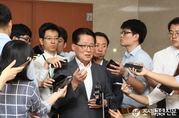 (조세금융신문=전한성 기자) 보해저축은행 금품수수 혐의로 유죄 선고를 받은 새정치민주연합 박지원 의원이 10일 오전 서울 여의도 국회 정론관에서 기자회견을 마친 후 기자들의 질문에 답변하고 있다.박 의원은 현재9일 서울고법 형사3부에서저축은행으로부터 금품을 받은 혐의로 불구속기소되 징역 1년 집행유예 2년, 추징금 3000만원을 선고받은 상태이다.이날 기자회견에서박 의원은 "무죄를 선고한 1심과 2심은 달라진 것이하나도 없다. 새로운 추가 증거도 없다"며 "보해저축은행은 이미 문제가 돼 검찰이 수사 중이었다. 그런 때에 그회사 돈을 받을 수 있는 국회의원은 단 한 사람도 없다. 그것도 목포의 제 지역구 사무실에서 어떻게 돈을 받을 수 있겠나"라며 무죄를 주장했다.