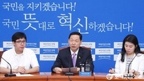 (조세금융신문=전한성 기자) 새누리당 김무성 대표의 취임 1주년 기자회견이 13일 오전 서울 여의도 국회 당 대표실에서 열린 가운데 김 대표가 회견문을 낭독하고 있다.
