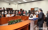 (조세금융신문=전한성 기자) 혁신안 관련 당규 개정 등을 위해 열린 새정치민주연합당무위원회의가 13일 오전 서울 여의도 국회에서 열린 가운데 서울대학교 조국 교수가 참석해 문재인 대표의 모두발언을 듣고 있다.
