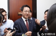 (조세금융신문=전한성 기자) 국회 기획재정위원회의 조세법안심사소위원회(조세소위)가 4일 오후 서울 여의도 국회에서 열린 가운데 강석훈 위원장이 소위가 끝난 후 기자들의 질문에 답하고 있다.
