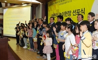 (조세금융신문=전한성 기자) 어린이 놀이헌장 원탁회의 참가자들과 시도 교육감이 함께한 '어린이 놀이헌장 선포식'이 4일 오전 서울 여의도 국회에서 열린 가운데 참석자들이 기념촬영을 하고 있다.어린이 놀이헌장은 ▲ 어린이에게는 놀 권리가 있다 ▲ 어린이는 차별 없이 놀이 지원을 받아야 한다 ▲ 어린이는 놀 터와 놀 시간을 누려야 한다 ▲ 어린이는 다양한 놀이를 경험해야 한다 ▲ 가정, 학교, 지역사회는 놀이에 대한 가치를 존중해야 한다 등 5개 항으로 구성돼 있다.전국시·도교육감협의회가 주최하는 이날 행사에는 민병희 도교육감을 비롯해 장휘국 회장, 조희연 서울시교육감, 이청연 인천시교육감, 설동호 대전시교육감, 최교진 세종시교육감, 박종훈 경남교육감, 국회 교육문화체육관광위원회 소속 도종환·박혜자 의원 등이 참석한다. 또 어린이재단, 어린이 문화연대, 예술놀이터, 유니세프, 방정환 재단, 세이브더칠드런, 참교육학부모회 등 어린이 관련 단체도 참석했다.