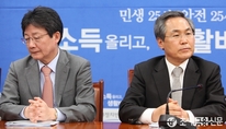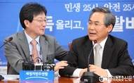 (조세금융신문=전한성 기자) 새누리당 유승민(왼쪽) 원내대표와 새정치민주연합 우윤근 원내대표를 비롯한 여야 원내지도부가4일 오전서울 여의도 국회에서 열린 마지막 주례회동을 가진 가운데 우 원내대표가 생각에 잠겨 있다.