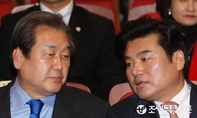 (조세금융신문=전한성 기자) '청년과 함께하는 노동개혁 연내 입법 호소(헌혈)대회 - 노동개혁 연내 입법으로 피땀흘려 일터를 늘려 달라!'가 29일 오후 서울 여의도 국회 의원회관에서 열린 가운데 새누리당 김무성(왼쪽) 대표와 원유철 원내대표가 귀엣말을 나누고 있다.