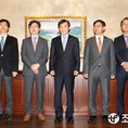 (조세금융신문=전한성 기자) '경제동향간담회'가 25일 오전 서울 중구 한국은행 본관에서 열린 가운데 참석자들이 기념촬영을 하고 있다.왼쪽부터 김주섭 한국노동연구원 선임연구위원, 김세직 서울대학교 교수, 이만종 고려대학교 교수, 이주열 한국은행 총재, 정인석 Daiwa 증권 전무, 유창범 BoA 메릴린치 서울지점 대표, 박해식 한국금융연구원 국제금융연구 실장.