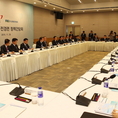 (조세금융신문=전한성 기자) '새누리당-전경련 정책간담회'가 25일 오후 서울 여의도 전경련 컨퍼런스센터에서 열린 가운데 새누리당 김무성 대표가 모두발언을 하고 있다.비공개로 진행된 간담회에서 재계는 한국 경제의 활성화를 위해 한·중 자유무역협정(FTA) 비준 동의안이 조속히 통과될 수 있도록 해달라고요청한 것으로 전해졌다.이날 회의에는 새누리당에서 김무성 대표를 비롯해 김정훈 정책위의장, 이운룡 정무위 위원, 강석훈 기재위 간사, 박민식 미방위 간사, 이진복 산자위 간사, 권성동 환노위 간사, 이장우 대변인 등 8명이 참석했다.정부 측에서는 정은보 기재부 차관보, 이석준 미래부 제1차관 등 6명이, 경제계에서는 허창수 회장, 이승철 전경련 상근부회장, 정기영 삼성경제연구소 사장, 정진행 현대자동차 사장, 황규호 SK 경영경제연구소 사장, 김주형 LG 경제연구원 사장 등 22명이 참석했다.