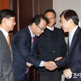 (조세금융신문=전한성 기자) '경제동향간담회'가 25일 오전 서울 중구 한국은행 본관에서 열린 가운데 이주열(오른쪽) 한국은행 총재가 유창범 BoA 메릴린치 서울지점 대표와 악수 나누고 있다.