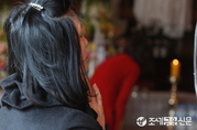 (조세금융신문=전한성 기자) '2016학년도 대학수학능력시험'을 하루 앞둔 11일 오후 서울 종로구 조계사에 한 학부모가 자녀의 고득점을 기원하며 기도하고 있다.