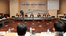 (조세금융신문=전한성 기자) 최경환(앞줄 오른쪽 다섯번째)경제부총리 겸 기획재정부장관이 11일 오후 서울 여의도 중소기업중앙회를 찾아 중소·벤처기업인 대표들과 간담회를 갖은 가운데 내빈들과 기념촬영을 하고 있다.