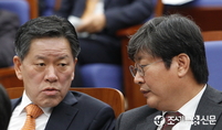 (조세금융신문=전한성 기자) '새정치민주연합 정책의원총회'가 12일 오전 서울 여의도 국회에서 열린 가운데 주승용(왼쪽) 최고위원과이춘석 원내수석부대표가 대화 나누고 있다.