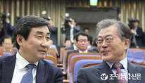 (조세금융신문=전한성 기자) '새정치민주연합 정책의원총회'가 12일 오전 서울 여의도 국회에서 열린 가운데 문재인(오른쪽) 대표와 이종걸 원내대표가 밝은 표정으로 대화 나누고 있다.