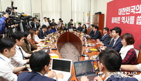 (조세금융신문=전한성 기자) 새누리당 최고중진연석회의가 21일 오전 서울 여의도 국회 대표최고위원실에서 열린 가운데 심재철 의원이 한국사 교과서를 들고 발언하고 있다.