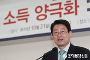 (조세금융신문=전한성 기자) 국회경제정책포럼과 정희수 국회 기획재정위원장이 공동 주최하는 '한국 사회 어디로 가는가? 4대 양극화와 정책대안 - 소득 양극화:소득불평등과 균형성장'이 21일 오후 서울 여의도 국회 의원회관에서 열린 가운데 주형환 기획재정부 제1차관이 축사를 하고 있다.
