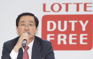 (조세금융신문=전한성 기자)이홍균 롯데면세점 대표이사가12일 오전 인천 중구 운서동 롯데면세점 통합물류센터에서 열린 롯데면세점 비전 선포식에서 기자들의 질문에 답변하고 있다.