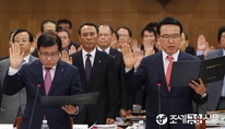 (조세금융신문=전한성 기자)농협경제지주에대한 국회 농림축산식품부해양수산위원회의 국정감사가 7일 서울 중구 새문안로 농협중앙회에서 열린 가운데 이상욱(오른쪽) 농업경제대표이사, 이기수 축산경제대표이사가 증인선서를 하고 있다.