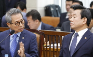 (조세금융신문=전한성 기자) 행정자치부·중앙선거관리위원회·국민안전처·인사혁신처·경찰청에 대한 국회 안전행정위원회의 종합감사가 8일 서울 여의도 국회에서 열린 가운데 박인용(오른쪽) 국민안전처장과 이근면 인사혁신처장이 대화 나누고 있다.
