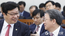 (조세금융신문=전한성 기자) 기획재정부·국세청·관세청·조달청·통계청에 대한 국회 기획재정위원회의 종합감사가 6일 서울 여의도 국회에서 열린 가운데 주형환(왼쪽) 기획재정부 제1차관과 임환수 국세청장이 대화 나누고 있다.