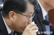 (조세금융신문=전한성 기자) 금융위원회·금융감독원에 대한 국회 정무위원회의 종합감사가 7일 서울 여의도 국회에서 열린 가운데 진웅섭 금융감독원장이 목을 축이고 있다.