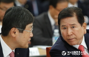 (조세금융신문=전한성 기자) 농협중앙회·농협금융지주·NH개발·농협자산관리·농협정보시스템·농협생명보험·농협손해보험·NH투자증권·NH-CA자산운용·농협캐피탈·NH선물·NH저축은행에 대한 국회 농림축산식품부해양수산위원회의 국정감사가 6일 서울 중구 새문안로 농협중앙회에서 열린 가운데최원병(오른쪽) 농협중앙회장과 김정식 전무이사가 귀엣말을 나누고 있다.