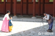 (조세금융신문=전한성 기자) 추석연휴 둘째날인 27일 오후 서울 종로구 경복궁에한복을 입은 한 다문화 가족이 근정전을 배경으로 기념촬영을 하고 있다.한편, 문화재청은추석연휴기간(26일부터 29일까지)동안 고궁과 조선왕릉 등을 휴무 없이 운영하며 추석 당일(27일)에는 무료로 개방한다고 밝혔다.