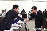 (조세금융신문=전한성 기자) 국민건강보험공단·건강보험심사평가원에 대한 국회 보건복지위원회의 국정감사가 22일 서울 여의도 국회에서 열린 가운데 성상철(왼쪽) 국민건강보험공단 이사장이 김춘진 위원장과 악수 나누고 있다.