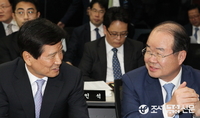 (조세금융신문=전한성 기자) 산업은행·기업은행·예금보험공사에 대한 국회 정무위원회의 국정감사가 21일 서울 여의도 산업은행 본점에서 열린 가운데 정성립(오른쪽) 대우조선해양 대표이사와 남상태 전 대표이사가 밝은 표정으로 대화 나누고 있다.