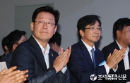 (조세금융신문=전한성 기자) '주빌리은행 출범식'이 27일 오전 서울시청 시민청에서 열린 가운데 이재명(왼쪽, 현 성남시장), 유종일 공동은행장이 박수를 치고 있다.주빌리은행은 암암리에 사고 팔리는 장기 연체자들의 부실채권을 사들여 서민들의 부채를 탕감하려는 목적으로 설립됐다.