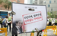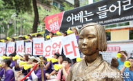 (조세금융신문=전한성 기자) (사)우리겨레하나되기운동본부가 광복 70주년을 맞아 서울 종로구 율곡로 주한 일본대사관 앞에서 '광복 70주년, 외침 - 아베는 들어라'를 개최한 가운데 참가자들이소녀상 옆에서 일본 대사관을 향해구호를 외치고 있다.