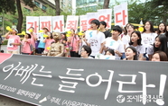 (조세금융신문=전한성 기자) (사)우리겨레하나되기운동본부가 광복 70주년을 맞아 서울 종로구 율곡로 주한 일본대사관 앞에서 '광복 70주년, 외침 - 아베는 들어라'를 개최한 가운데 참가자들이 구호를 외치고 있다.