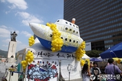 (조세금융신문) 추석연휴에도 세월호 유가족들의 '수사권, 기소권을 보장하는 세월호 특별법 제정'을 촉구하는 농성이 계속되고 있는 가운데, 국민단식농성장 천막 위에 '진실의 배' 풍선이 띄워져 있다.