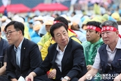 (조세금융신문) 전국금융산업노조가 관치금융 철폐 등을 요구하며 9월 3일 하루 총파업에 돌입했다. 37개 지부에 소속된 전국 2만명(주최측 추산, 경찰추산 7천여명)의 조합원이 목동종합운동장에서 모인 이날 집회에서 관치금융 철폐와 구조조정 저지 2014년도 임단투 승리를 위해 조합원들은 한 목소리를 냈다.이날 김문호 위원장은 "관치금융 철폐와 금융공기업의 무차별적인 복지 축소 중단 등 금융노동자 옥죄기 중단을 요구해왔지만 정부와 사측은 지금까지 어떠한 대안도 내놓지 않고 있다"면서 "우리의 요구사항이 관철되지 않는다면 오늘 파업으로 끝나는 것이 아니라 2차, 3차 총파업에 돌입할 것"이라고 경고했다.그러면서 "이번 총파업을 통해 금융 공기업에 대한 정부의 잘못된 정책을 바로잡을 것"이라며 "흔들리는 금융산업을 다시 정상화 시킬 것"이라고 결의 했다.금융노조는 관치금융 철폐 및 낙하산 인사 저지, 금융산업 재편 등 구조조정 분쇄, 정부의 노사관계 개입 분쇄 및 복지축소 저지, 고용안정 및 근로조건 개선 등을 요구하고 있다. 총파업 대회사를 하는 김문호 금융노조 위원장 집회장으로 들어오는 각 지부 깃발 금융노조 깃발을 흔드는 김문호 위원장 총파업 연대사를 하는