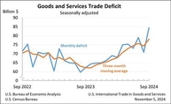(조세금융신문=최주현 기자) 지난 9월 미국 무역수지 적자는 844억 달러로, 2년 5개월 만에 최대를 기록했다고 미국 상무부가 밝혔다. 5일(현지시간) 연합뉴스에 따르면 전월 708억 달러(704억 달러에서 수정) 대비 19.2% 증가한 수치로, 2022년 4월 이후 가장 높은 수준이다. 이는 전문가 전망치를 크게 웃도는 결과라고 AFP·로이터통신은 보도했다. 수입이 3천523억 달러로 전월 대비 3.0% 늘었다. 연말 연휴 시즌을 앞두고 있다는 점과 지난 달 항만 노조 파업에 대비해 재고 비축량을 크게 늘린 결정 등의 영향을 받은 것으로 보인다고 AFP는 분석했다. 수출은 2천679억 달러로 전월보다 1.2% 감소했다고 미 상무부는 전했다. 중국과의 교역에서 무역 적자 규모는 8월 247억 달러에서 269억 달러로 소폭 늘었다. [조세금융신문(tfmedia.co.kr), 무단전재 및 재배포 금지]