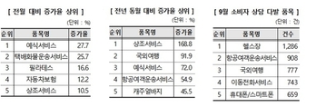 (조세금융신문=최주현 기자) 지난달 예식과 택배화물운송 관련 소비자 상담이 증가해 소비자 주의가 요구된다. 25일 한국소비자원과 한국소비자단체협의회는 지난 달 1372소비자 상담센터에 접수된 소비자 상담이 4만4천272건으로 지난해 9월보다 16.4% 증가했으며, 전달(5만5천277건)보다 19.9% 감소했다고 밝혔다. 소비자원은 지난해 9월과 비교해 상조 서비스 관련 상담이 168.8% 급증했는데, 이는 특정 업체의 선불식 할부 상품에 대한 만기·중도 해약환급금 지급 지연 및 연락 두절에 따른 영향이라고 설명했다. 국외여행 관련 상담도 지난해 9월보다 91.9% 증가했다. 항공권과 숙박, 여행상품 등의 계약 해지 시 업체가 과도한 위약금을 요구한다는 소비자 상담이 많았다. 전달과 비교해선 예식서비스 관련 상담 증가율이 27.7%로 가장 많이 늘었다. 택배화물운송서비스는 25.7%, 필라테스는 16.6%, 자동차보험은 12.2% 각각 증가했다. 예식 관련 상담은 계약 해지 때 업체가 과도한 위약금을 요청한다는 내용이 대부분이었고 택배화물운송 관련은 파손 및 분실로 배상을 요구하는 상담이 많았다. 전달 상담 건수가 가장 많은 품목은 헬스장으로 1천286건이었고
