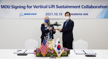 (조세금융신문=홍채린 기자) 대한항공이 우리 군의 회전익 항공기에 대한 국내 정비능력을 향상하기 위해 미국 보잉사와 기술협력 추진에 나선다. 대한항공은 19일 경기도 성남 서울공항에서 개최 중인 ‘2021 서울 국제 항공우주 및 방위산업 전시회(ADEX 2021)'에서 미국 보잉사와 ‘군용 회전익 항공기의 기술협력을 위한 합의서(MOU)’를 체결했다고 밝혔다. 이날 행사에는 이수근 대한항공 오퍼레이션부문 부사장과 마리아 레인(Maria Laine) 보잉 항공부문 부사장 등 양사 관계자들이 참석했다. 합의 각서는 아파치, 치누크 등 우리 군이 특수작전임무 및 수송용으로 운용하고 있는 회전익 항공기의 국내 정비능력 향상을 위해 대한항공과 보잉사가 유지 정비(Maintenance Repair & Overhaul, MRO) 분야에서 상호 협력하는 것을 주요 골자로 한다. 현재 대한항공은 아시아·태평양 지역 최대의 군용기 성능개량 및 종합 정비창으로 한국 및 미국 전투기와 수송기, 헬기 등 4700대 이상의 군용기 정비 및 성능개량 사업 실적을 보유하고 있다. 이수근 부사장은 "국내 최고의 항공기 성능개량 및 MRO 기술을 보유하고 있는 대한항공과 세계 최고의