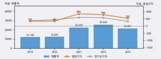 발전소 엔지니어링 서비스 업체인 한전기술[052690]은 14일 오전 11시 14분 현재 전날보다 3.01% 오른 7만 1900원에 거래되고 있다. 이날 거래량은 전일 대비 200.3% 급증하면서 최근 5거래일 거래량의 최고치를 넘어섰다. 한전기술의 2023년 매출액은 전년대비 7.9% 늘어난 5451억원이고, 영업이익 또한 전년대비 104.9% 늘어난 286억원을 기록했다. 이 회사의 매출액 증감률과 영업이익 증감률은 각각 코스피 상위 30%, 상위 13%에 해당된다. 최근 3년간의 실적을 살펴보면 안정적 성장세를 보이고 있다. 최근 3년간 매출로 볼 때 매년 증가하고 있다. 다만 최근에 그 증가폭이 다소 감소하고 있다. [그래프]한전기술 연간 실적 추이 사업의 성장세에 따라 법인세 납부액도 늘어나고 있다. 한전기술의 지난해 법인세 납부액은 114억원으로 2022년 78억원보다 36억원(46.2%) 증가했다. 이는 실적 증가에 따른 당기순이익이 크게 늘었기 때문이며, 법인세 유효세율(법인세비용/법인세차감전순이익)은 25.9%를 기록했다. 한전기술의 지난 3년 동안 법인세 납부액 추이를 보면 각각 13억원, 78억원, 114억원으로 매년 상승세를 기록하고 있