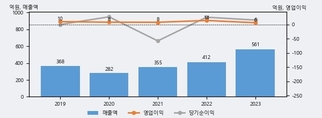 IT 시제품 제작사인 모델솔루션[417970]은 2일 오후 2시 33분 현재 전날보다 12.47% 오른 1만 10원에 거래되고 있다. 이날 거래량은 전일 대비 317.8% 급증하면서 최근 5거래일 거래량의 최고치를 넘어섰다. 모델솔루션의 2023년 매출액은 649억으로 전년대비 -7.2% 하락했고, 영업이익 역시 3억으로 전년대비 -96.9% 하락했다. 이 회사의 매출액 증감률과 영업이익 증감률은 각각 코스닥 하위 38%, 하위 22%에 해당된다. [그래프]모델솔루션 연간 실적 추이 사업의 성장세가 주춤함에 따라 법인세 납부액도 감소하고 있다. 모델솔루션의 지난해 법인세 납부액은 6억원으로 2022년 23억원보다 -17억원(-73.9%) 감소했다. 이는 실적 감소에 따라 당기순이익도 줄었기 때문이며, 법인세 유효세율(법인세비용/법인세차감전순이익)은 37.5%를 기록했다. 모델솔루션의 지난 3년 동안 법인세 납부액 추이를 보면 2022년에는 증가했으나, 작년에는 6억원으로 크게 감소했다. [표]모델솔루션 법인세 납부 추이