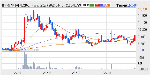 (조세금융신문=TF로보 기자) 종합엔지니어링 전문업체인 도화엔지니어링[002150]은 29일 오후 2시 55분 현재 전날보다 5.07% 오른 9540원에 거래되고 있다. 이날 거래량은 전일 대비 208.8% 급증하면서 최근 5거래일 거래량의 최고치를 넘어섰다.