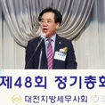 (조세금융신문=김영기 기자) 비오는 6월 23일 오전 11시, 대전광역시 동구 가양동 소재 ‘션샤인 호텔’ 그랜드볼룸 5층. 우천시에도 불구하고 금빛 세무사 배지를 단 대전지방세무사회 소속 회원 700여명이 ‘제48회 정기총회’에 참석하기 위해 발걸음을 재촉하며 행사장에 모여들었다. 그동안 코로나 팬데믹 영향으로 비대면 비대면 총회로 실시해 오다가 드디어 2년만에 ‘대면 정기총회’로 대전지역 전회원이 참석한 가운데 행사가 거행했다. 사회를 맡은 최천석 총무이사의 행사 시작을 알리는 멘트가 총회장을 엄숙하게 했으며, 총회장 맨 뒤쪽에서 내빈들의 입장과 함께 회원들의 뜨거운 박수소리가 울려 퍼졌다. 행사는 개회선언, 국민의례, 내빈소개, 회장인사, 본회장 치사, 내빈축사, 시상식, 회무보고, 기타 의결사항, 폐회선언, 회원 보수교육 등의 순서로 약 1시간 30분에 걸쳐 행사가 진행됐다. 700여명이 만들어낸 뜨거운 박수소리와 함께 고태수 대전지방회장이 원경희 한국세무사회장과 강민수 대전지방국세청장, 정구정 한국세무사회 고문 등 여러 내빈을 의전하면서 총회장에 들어섰다. 원활한 행사진행을 위해 내외빈 기념촬영이 곧바로 실시했다. 기념촬영에서는 고태수 대전지방세무사