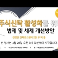 일시: 4월 28일 오전 9:30~12시 주최: 김병욱 더불어민주당 국회의원 주관: 조세금융신문, (사)금융조세포럼 주제발표 - 이중기 홍익대학교 법과대학 교수 - 안경봉 국민대학교 법과대학 교수 좌장: 김병일 강남대학교 경영관리대학 정경학부 교수 패널 - 이중교 연세대학교 법학전문대학원 교수 - 이상훈 법무법인 가온 변호사 - 이영경 김장법률사무소 변호사 - 곽준영 법무법인(유) 원 변호사 - 배정식 하나은행 100년 리빙트러스트센터장 - 이상민 금융감독원 자산운용감독국 자문신탁감독팀장 [조세금융신문(tfmedia.co.kr), 무단전재 및 재배포 금지]