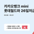 (조세금융신문=송기현 기자) 카카오뱅크는 8일 청소년 고객을 대상으로 한 제휴저금 서비스 '롯데월드와 26일저금'을 출시한다고 밝혔다. 카카오뱅크에 따르면 롯데월드와 26일저금은 이날부터 21일까지 2주간 가입할 수 있다. 기존 '미니(mini) 26일저금'에 롯데월드 어드벤처 이용 혜택을 더했다. 미니 26일저금은 '카카오뱅크 미니' 고객을 대상으로 한 저금 서비스다. 매일 500원에서 2000원까지 저축 금액을 설정해 26일 동안 최대 5만2000원의 금액을 자동으로 저금할 수 있다. 이번 롯데월드와 26일저금에 가입하면 저금 1일차에 롯데월드 어드벤처를 이용할 수 있는 종합이용권 1+1 혜택이 주어진다. 6일차에는 롯데월드 아이스링크도 1+1으로 이용할 수 있는 이용권이 증정된다. 26일차에는 1인 오후이용권과 '머리띠 쿠폰'으로 구성된 '애프터 팩'을 2만6000원에 이용할 수 있는 혜택을 받을 수 있다. 이 상품에 가입한 고객을 대상으로 추첨을 통해 200명에게 '매직패스 프리미엄' 1회권을 증정하는 이벤트도 연다. [조세금융신문(tfmedia.co.kr), 무단전재 및 재배포 금지]