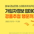 (조세금융신문=최주현 기자) BNK경남은행은 21일 디폴트옵션(사전지정운용제도) 대고객 이벤트 '디폴트옵션! 퇴직연금을 부탁해'를 오는 11월 10일까지 진행한다고 밝혔다. 디폴트옵션은 DC(확정기여형) 또는 IRP(기업·개인) 퇴직연금 가입자의 원리금 보장상품 만기 시 별도의 상품 운용 지시가 없는 경우 가입자가 사전에 정한 방법으로 퇴직연금 자산을 자동 운용하는 제도다. DC·IRP 신규·기존 고객이 디폴트옵션을 등록하고 디폴트옵션 저위험·중위험·고위험 포트폴리오 상품(초저위험 제외)을 10만 원 이상 직접 매수하면 선착순 1000명에게 스타벅스 모바일 커피쿠폰을 지급한다. 또 디폴트옵션 포트폴리오 상품을 100만 원 이상 직접 매수한 고객에게는 추첨을 통해 일리프란시스 커피머신(10명), 삼성전자 직화오븐(3명), 로보락 로봇청소기(2명), 삼성전자 그랑데 AI세탁기ㆍ건조기 패키지(1명)등 경품을 제공한다. 디폴트옵션 등록 및 매수 방법은 BNK경남은행 모바일뱅킹(App) 상품관리 메뉴에 접속해 퇴직연금 중 '디폴트옵션관리'를 선택하거나 인터넷뱅킹 및 영업점 방문을 통해서도 가능하다. 이벤트 관련 자세한 사항은 BNK경남은행 홈페이지 또는 모바일뱅킹 앱