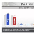 (조세금융신문=박청하 기자) 이재명 대통령 국정수행 지지도가 53.5%로 4주 만에 반등했다는 여론조사 결과가 나왔다. 6일 리얼미터가 에너지경제신문 의뢰로 지난달 29일부터 이달 2일까지 전국 18세 이상 유권자 2천17명을 대상으로 조사한 결과 이 대통령 국정수행을 긍정적으로 평가한 응답자는 53.5%로 나타났다. 이는 전주보다 1.5%포인트(p) 오른 것으로, 9월 첫째 주(1∼5일) 56.0%를 기록한 후 3주 연속 하락세를 보이다 반등한 수치다. 이 대통령의 국정수행을 부정적으로 평가한 응답자는 43.3%로 전주 대비 0.8%p 내렸다. 지난 1~2일 전국 18세 이상 유권자 1천8명을 대상으로 한 정당 지지도 조사에서는 더불어민주당이 47.2%, 국민의힘이 35.9%로 각각 집계됐다. 민주당 지지도는 전주 대비 3.9%p 상승했고, 국민의힘 지지도는 2.4%p 하락했다. 양당 지지율 격차는 지난주 5.0%p에서 11.3%p로 3주 만에 오차범위 밖으로 벌어졌다. 조국혁신당은 3.3%, 개혁신당은 2.8%, 진보당은 1.0%의 지지도를 보였다. 두 조사는 모두 무선 자동응답 방식으로 이뤄졌다. 대통령 국정수행 지지도 조사의 표본오차는 95% 신뢰수준