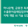 (조세금융신문=구재회 기자) 하나은행은 금융권 최초로, 하나금융티아이의 사내 독립기업인 하나금융융합기술원의 자체 개발 AI 기술을 도입한 'AI 수출환어음매입 전산 자동화' 서비스를 시행한다고 밝혔다고 24일 밝혔다. 하나금융융합기술원이 자체 개발한 AI 기술, ‘리딧(READIT) v3.0'이 도입된 이번 『AI 수출환어음매입 전산 자동화』 서비스는 비정형화된 수출 서류를 자동으로 분류하고 매입 정보 등 핵심 데이터를 디지털로 빠르게 추출하도록 구현되었으며, 정보 오입력 등 기존 수기 작성 방식에서 발생했던 오류를 최소화 함으로써 업무 편의성과 효율성을 높일 수 있게 됐다. 또한, 은행으로 집중되는 다양한 케이스의 수출 관련 문서를 학습하여 얻은 방대하고 다양한 패턴의 문자를 자체적으로 인식하고 생성할 수 있는 기술을 통해, 정확한 문자 인식 정보를 제공받을 수 있어 수출 업무 처리의 정확도가 향상 될 수 있을 것으로 기대된다. 앞으로도, 하나은행은 이번 『AI 수출환어음매입 전산 자동화』 서비스 시행을 시작으로, 자체 개발한 AI 기술인 ‘리딧(READIT) v3.0을 활용한 AI 기반의 수출 서류 심사 및 수출 서류 작성 서비스도 시행할 예정이다. 하나